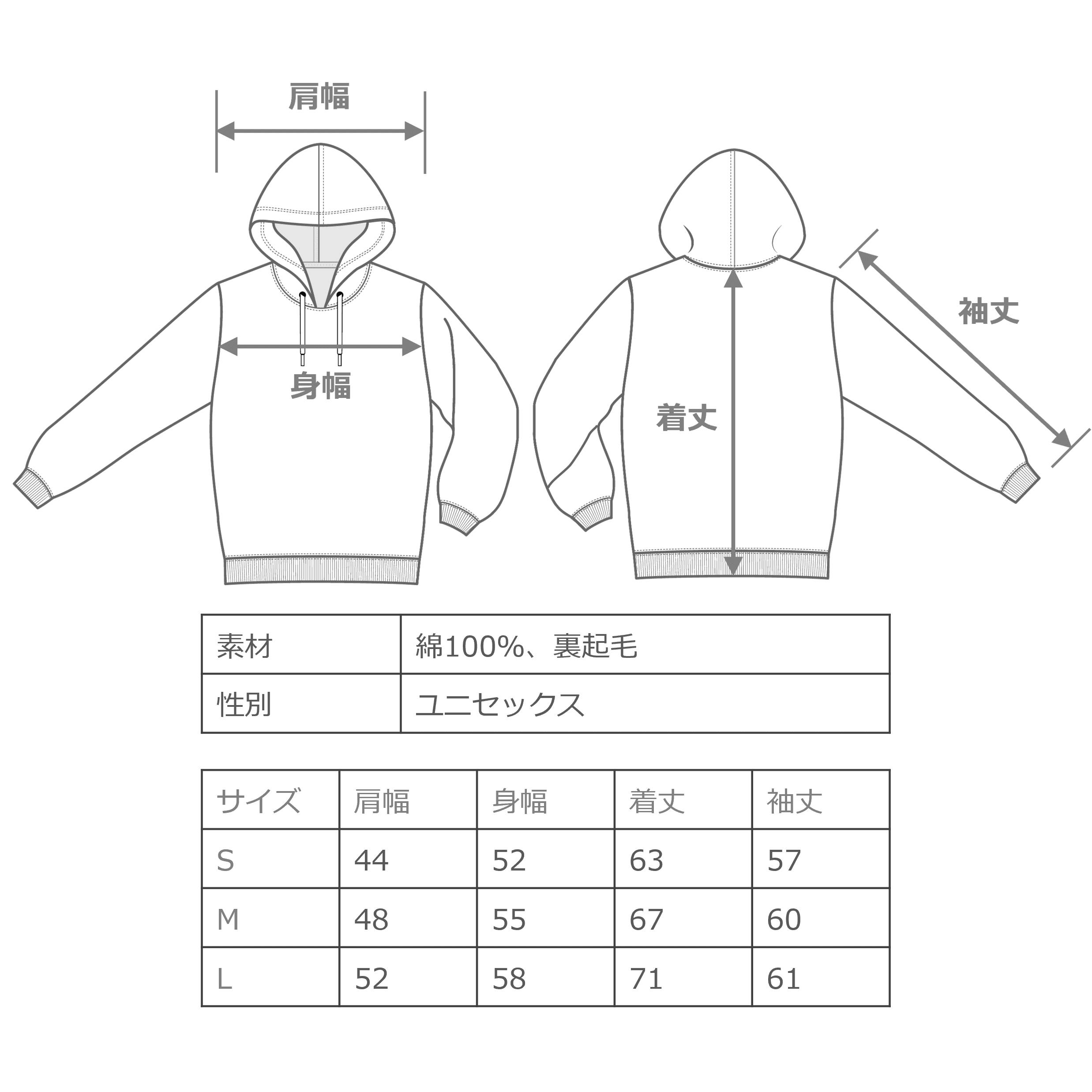 生地とカット|10オンス裏起毛のフーディ―です。生地厚がしっかりあるので、春秋のアウターとしても着ることができます。白味の強い霜降グレーが明るくキレイ目な印象を与えてくれます。
