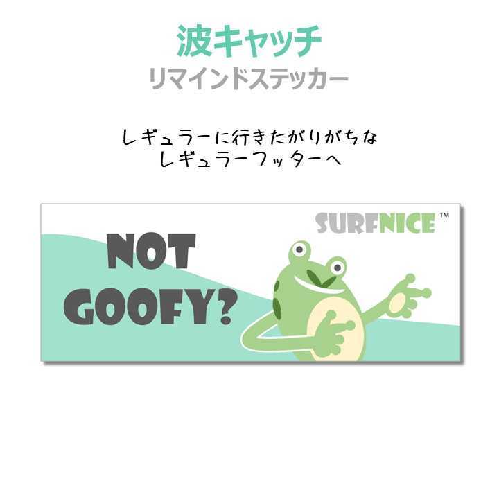 レギュラー方向に行きたい気持ちが強すぎて、グーフィーの波でもレギュラーに見えてしまう。そんな悩みを持つレギュラーフッター向けのリマインドステッカーです。
